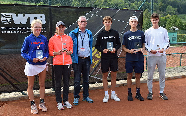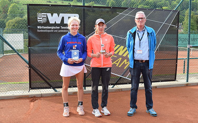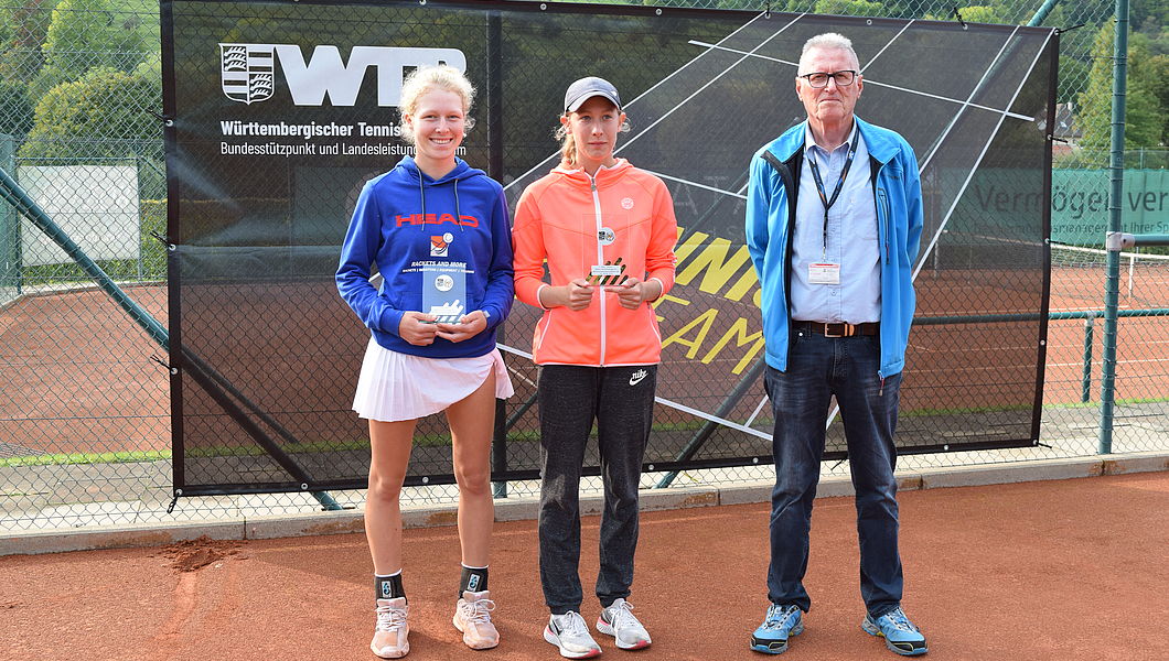 Die Damen, die nur ein Miniteilnehmerfeld aufwiesen, brachten kurz vor Turnierbeginn die nächsten Enttäuschungen mit drei weiteren Absagen, sodaß letztendlich sage und schreibe nur sieben Damen zu den Landesmeisterschaften antraten. Antonia Blattner, TEC Waldau, Titelverteidigerin und topgesetzt, traf dann im Halbfinale, das in der Halle ausgetragen werden musste, auf die erst 16-jährige Bernhauserin Katharina Spieth und musste sich dieser nach einem großen Fight überraschend mit 7:6,2:6,10:7 beugen. Die untere Hälfte verlief noch kurioser, denn I.Löprich vom TA VFL Sindelfingen trat zu ihrem Halbfinale nicht an und so fand sich Marika Müller von der TEC Waldau ganz überraschend im Finale, das dann wieder im Freien ausgetragen werden konnte. Der erste Satz wogte lange hin und her und endete etwas glücklich mit 7:6 für Spieth, die sich dann aber auf ihre Stärken, vor allem ihre sehr gute Vorhand besann und letztendlich deutlich mit 6:1 triumphierte.