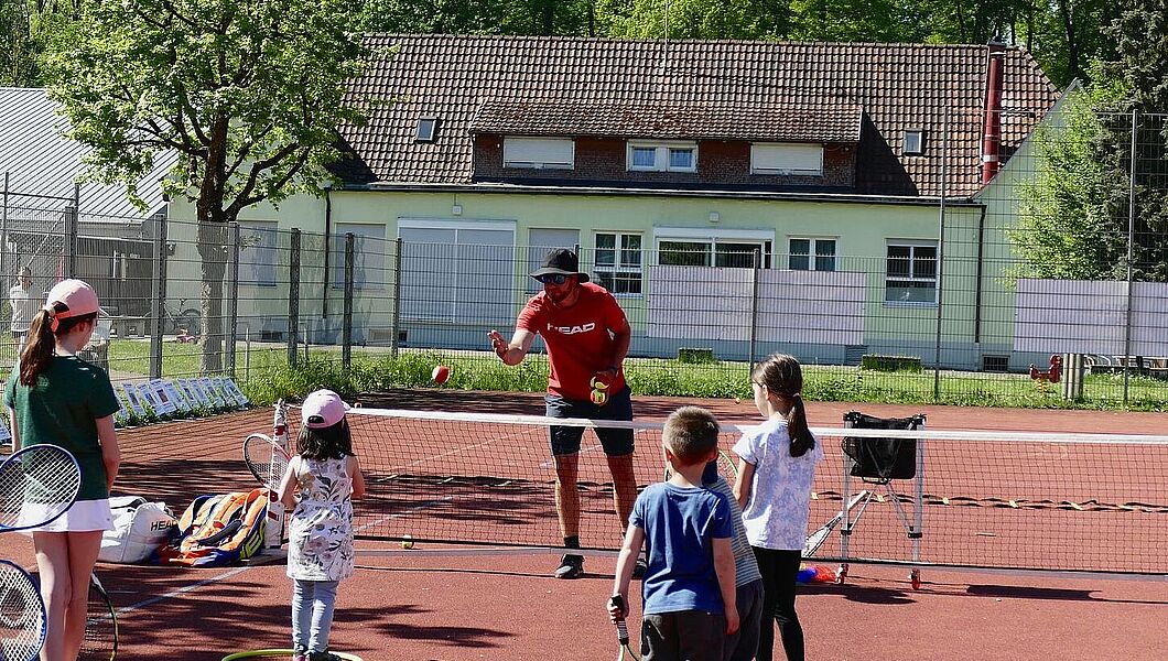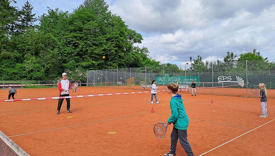 Ein anderes Format, das anderen Tennistrainerinnen und -trainern sowie Jugendverantwortlichen in anderen Tennisvereinen sicherlich eine Vorlage sein kann, setzte Daniel Csepai, A-Trainer und Fachberater Schultennis in gleich zwei Bezirken („Kocher-Rems-Murr“ und „Esslingen/Göppingen/Reutlingen“), auf der Tennisanlage der TA TSCH Esslingen um: Stationsbetrieb mit hinführenden Bewegungsaufgaben, die von den Kindern ausprobiert werden konnten. Am Ende der Aktion konnten auch sie die ersten Tennisbälle miteinander im Spiel halten.