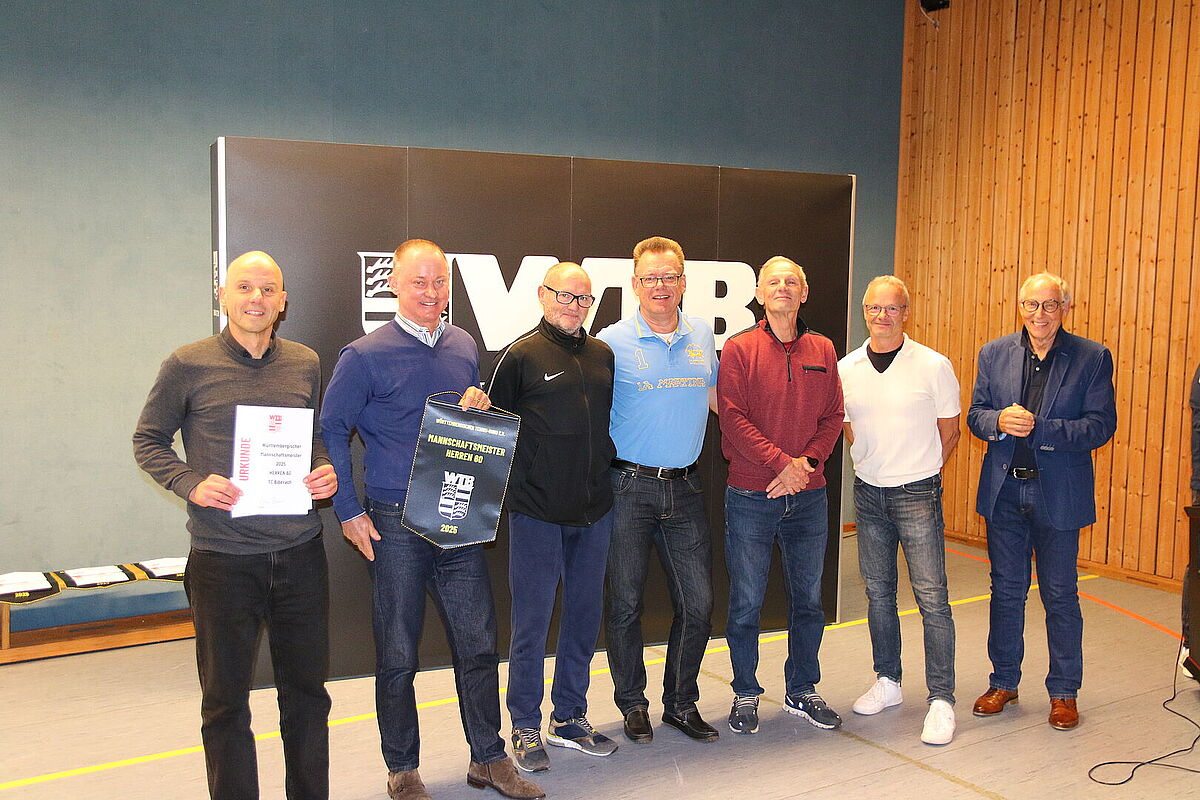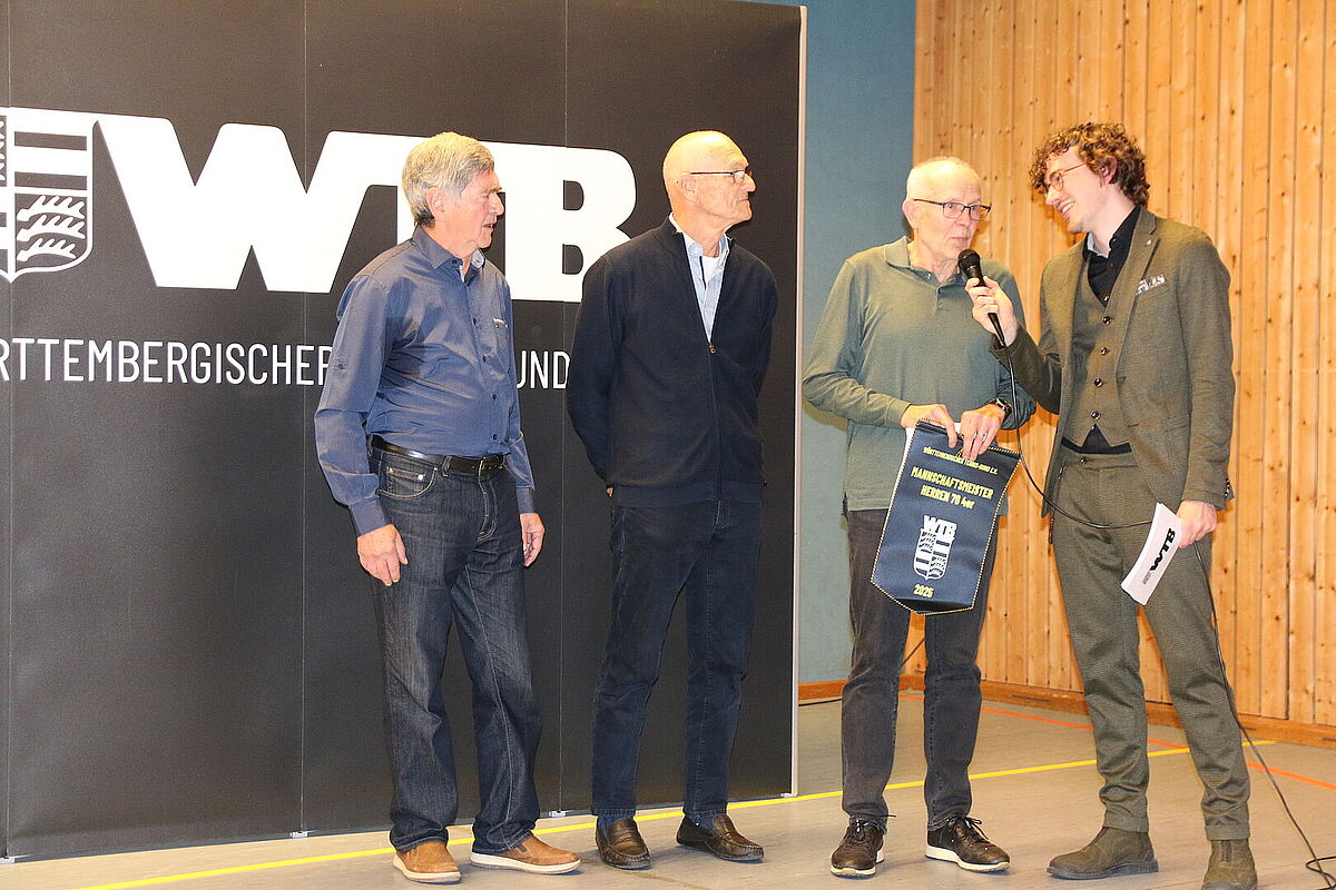 Zu Beginn wurden die Mannschaftsmeister der Saison 2025 ausgezeichnet. Die besten Teams aus der Württembergliga und Württembergstaffel erhielten ihre Urkunden, Wimpel und Anstecknadeln – ein sichtbares Zeichen für die zahlreichen Erfolge der Verbandsrunde. Anschließend folgte die Ehrung der Einzelsieger, die bei Deutschen Meisterschaften, Welt- und Europameisterschaften Podestplätze erreicht hatten. Insgesamt standen an diesem Abend 22 Mannschaften und 15 Einzelsieger auf der Bühne.
