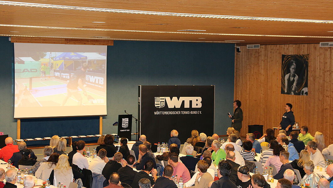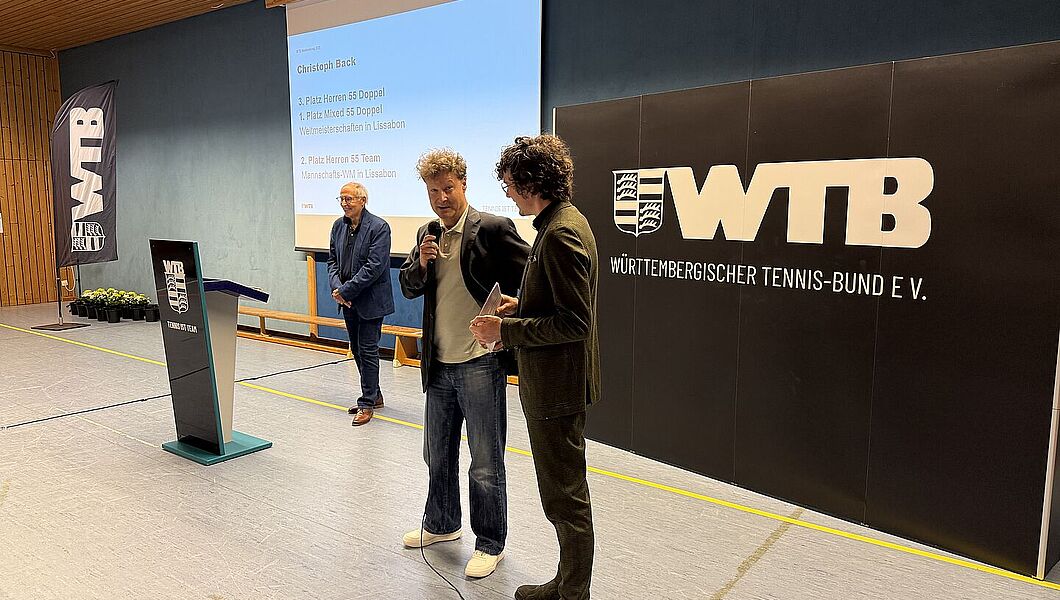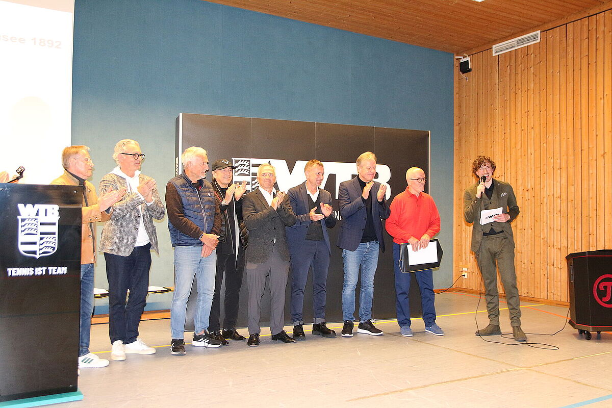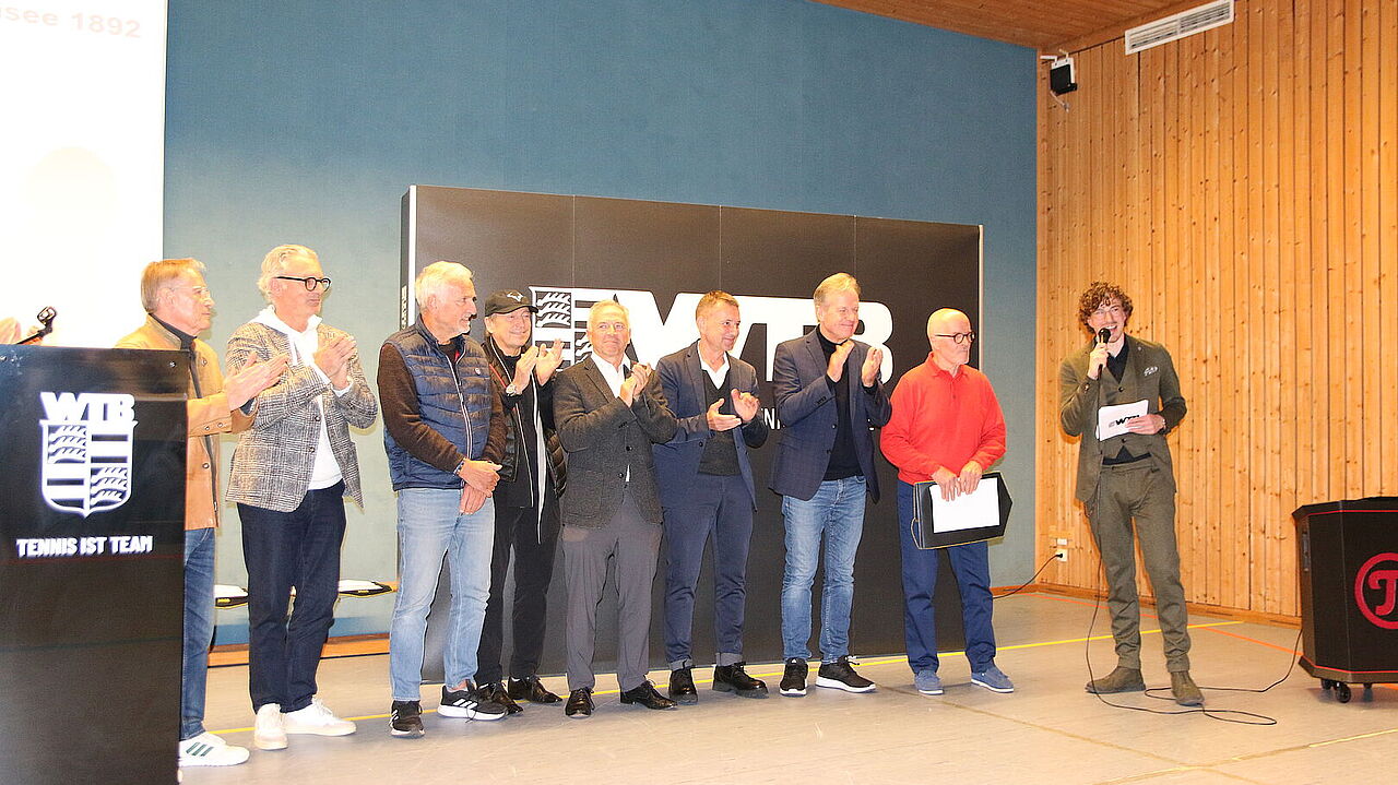 Der Abend bot viele bewegende und inspirierende Momente: Spielerinnen und Spieler wurden für nationale und internationale Turniererfolge und außergewöhnliche Leistungen geehrt. Vorstand Klaus Berner hob in einem Gespräch die Wertschätzung der Teilnehmer:innen und die außergewöhnlichen Erfolge im WTB hervor. Tennis könne in jedem Alter gespielt werden, und gerade bei den Senioren zeige sich, wie lange und erfolgreich dieser Sport betrieben werden könne. Im Zuge dessen nahm der WTB Vorstand auch Stellung zu den „Großen Spielen“ der Senioren. Er betonte, wie wichtig diese Wettkämpfe für den Verband sind und dass der WTB die Teilnahme seiner Auswahlmannschaften ausdrücklich unterstützt.
